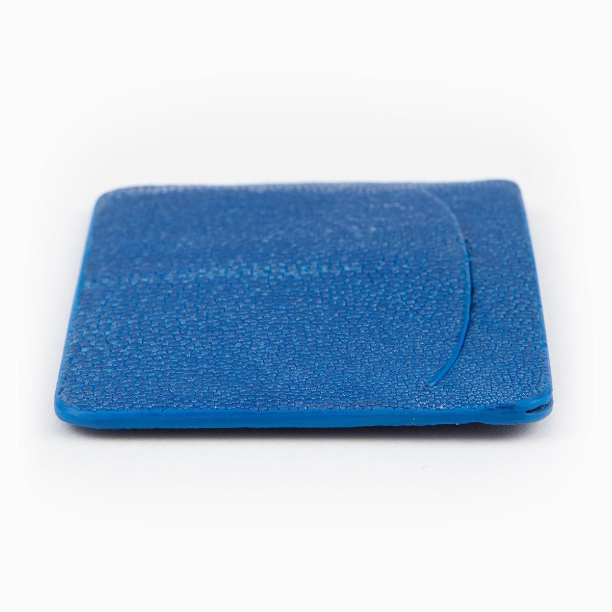 青い宝石としても有名なサファイア(ラテン語で「青」の意)のエイ革「ガルーシャ」を、外装としてセレクトした単パスケース。大地のシンボルとしても知られ、その名の如く宝石を散りばめたような豪華な光沢をまとうことで、他にはない高貴な輝きを放っていく。古来より縁起が良い革として重宝されてきた稀有な素材と、誠実・慈愛・徳望などの意味を持つ色彩との融合が、性別問わず多くの人たちの感性を魅了。究極的に薄くスリムなフォルムで、理想的な2枚のカードの持ち歩きにも適したシンプルなデザインには、フレンチならではのモノ作りへのこだわりが込められている。