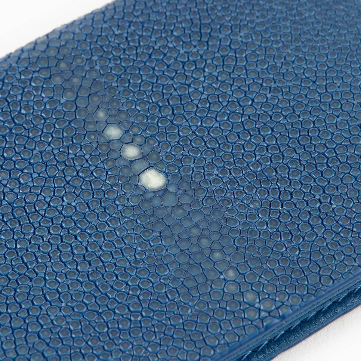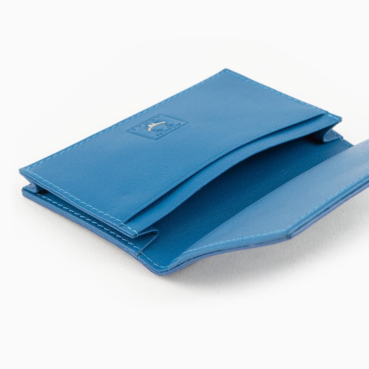 青い宝石としても有名なサファイア(ラテン語で「青」の意)のエイ革「ガルーシャ」を、外装としてセレクトしたカードケース。大地のシンボルとしても知られ、その名の如く宝石を散りばめたような豪華な光沢をまとうことで、他にはない高貴な輝きを放っていく。古来より縁起が良い革として重宝されてきた稀有な素材と、誠実・慈愛・徳望などの意味を持つ色彩との融合が、性別問わず多くの人たちの感性を魅了。ビジネスシーンでの収納性と実用性も併せ持ち、活躍するシーンを広げてくれる。