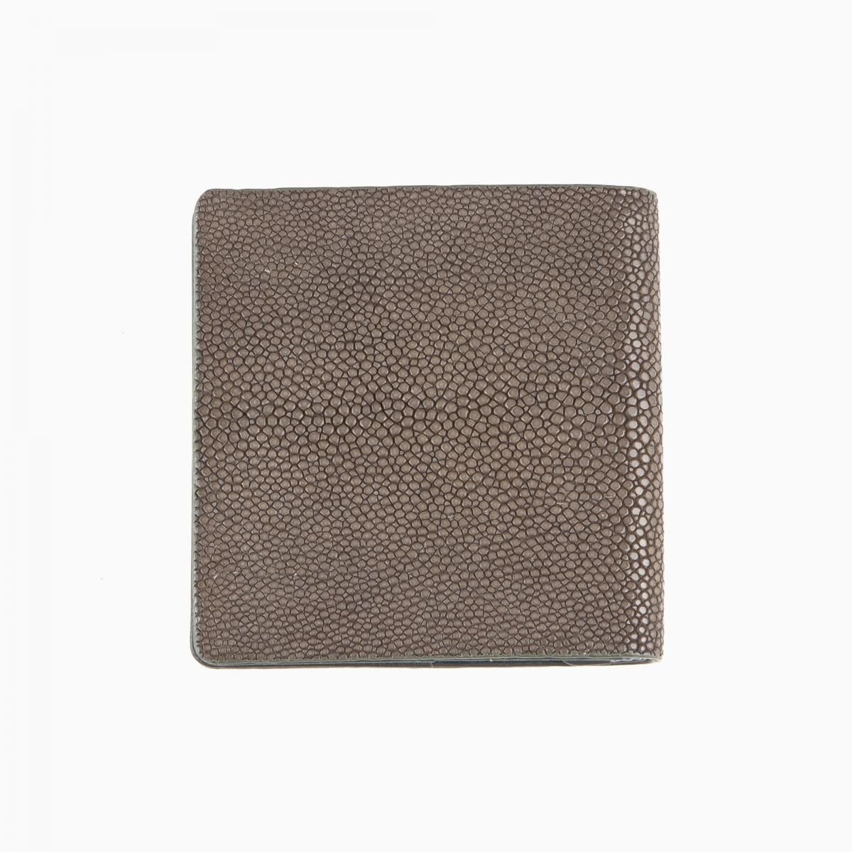 日本では赤みがかった銅(あかがね)を意味するスティールのエイ革「ガルーシャ」を、外装としてセレクトしたコンパクト財布。全体の機能を調和する金属的な色合いが、宝石を散りばめたような豪華な光沢と、「ガルーシャ」のシンボルでもあるスターマーク(天眼)をまとうことで、重厚感とエレガントな印象を創り出していく。古来より縁起が良い革として重宝されてきた稀有な素材と、伝達性に優れた色彩との融合が、さらなるコミュニケーションの活性化を演出。革挟み構造の札スペースが1つ、カードポケットが本体に1つとカブセ裏に1つ、浅めのカブセ付き小銭入れを1つ装備し、キャッシュレス時代に相応しいミニマルな携帯スタイルでスマートさを演出してくれる。